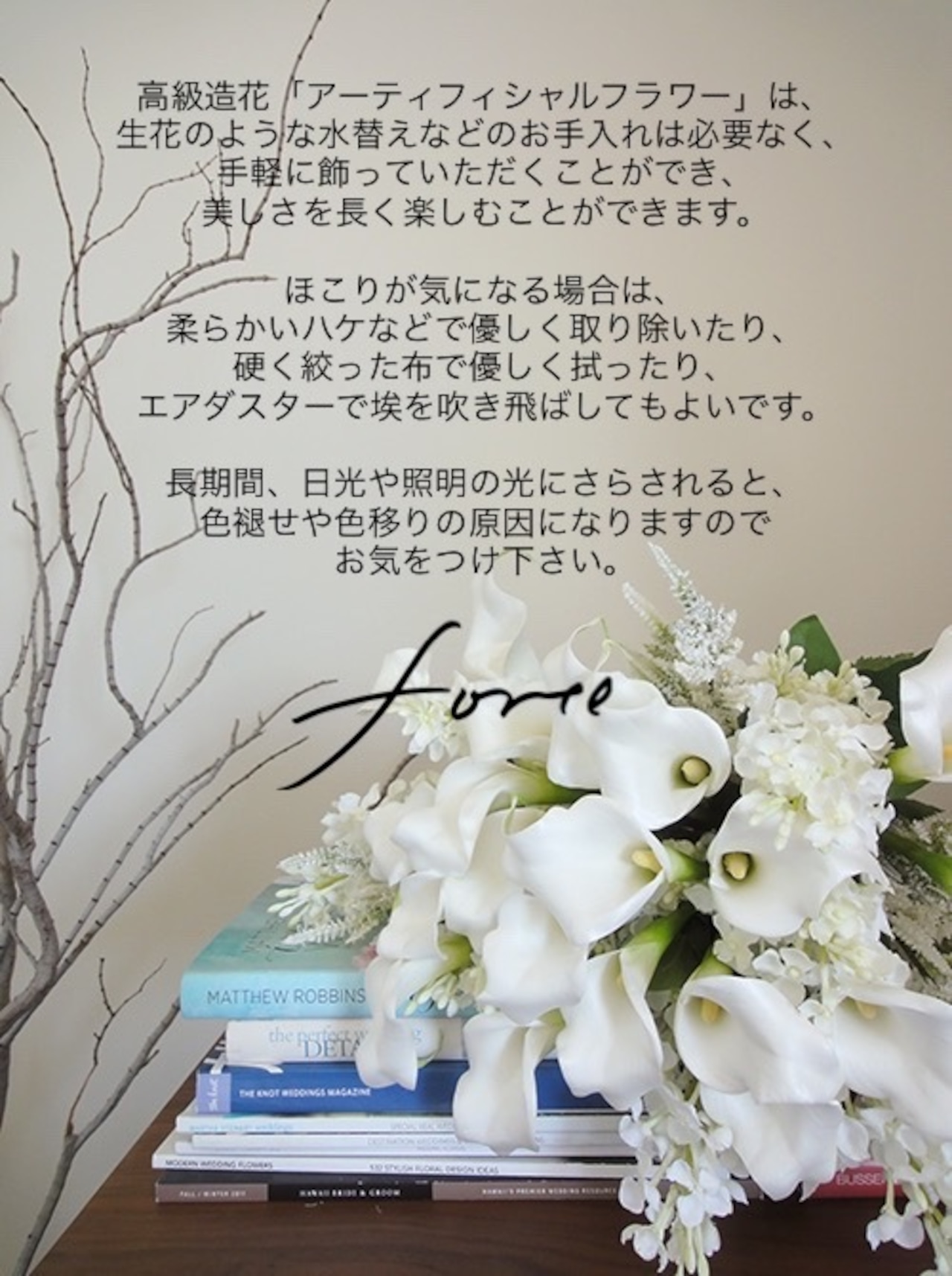 アーティフィシャルフラワーは耐久性に優れており何年も大切に飾って下さっているお客さまもいらっしゃいます。