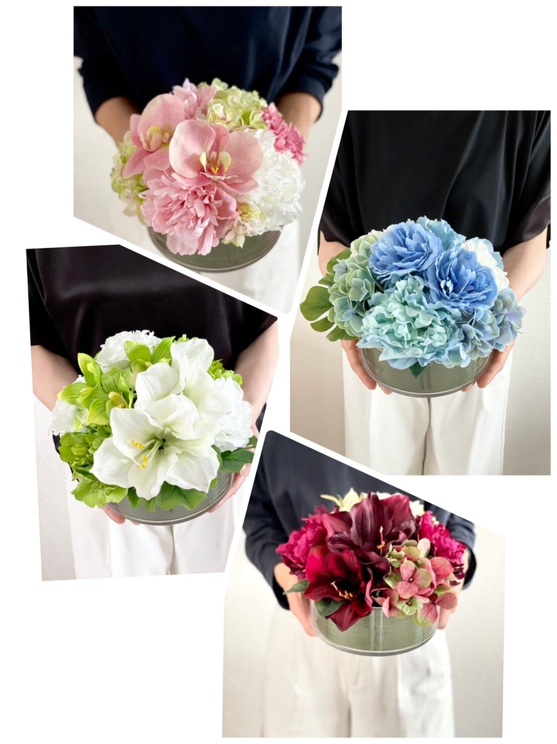 おしゃれな高級造花、アートフラワー(アーティフィシャルフラワー)のアレンジメントです。