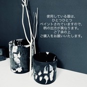 マットな黒にひとつひとつ手でペイントがほどこされたモダンな器が特徴です。樹脂製で割れにくく、丈夫でしっかりしています。