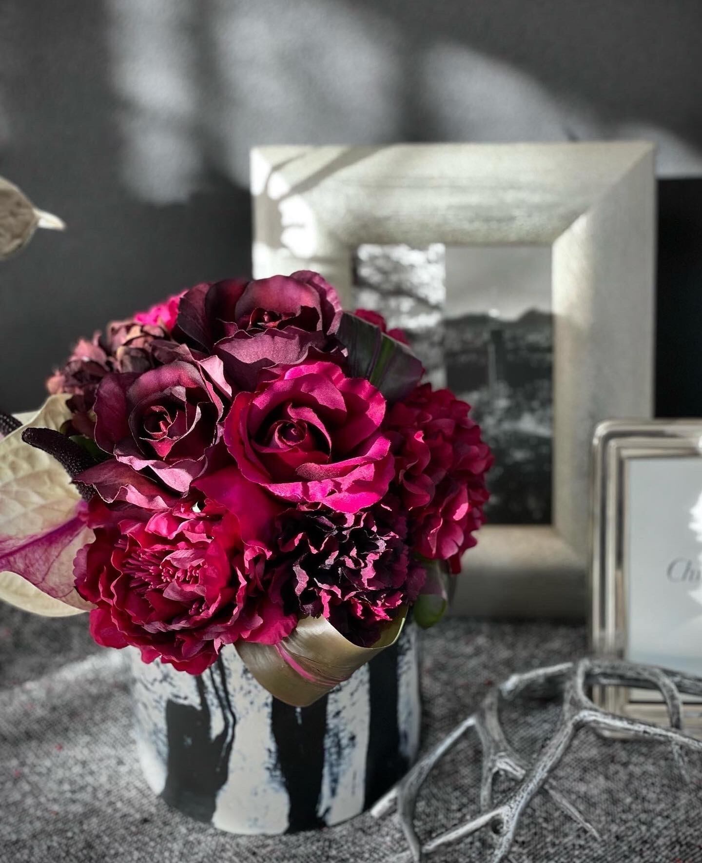 ボルドーカラーが華やか。シックなモダンアレンジメント