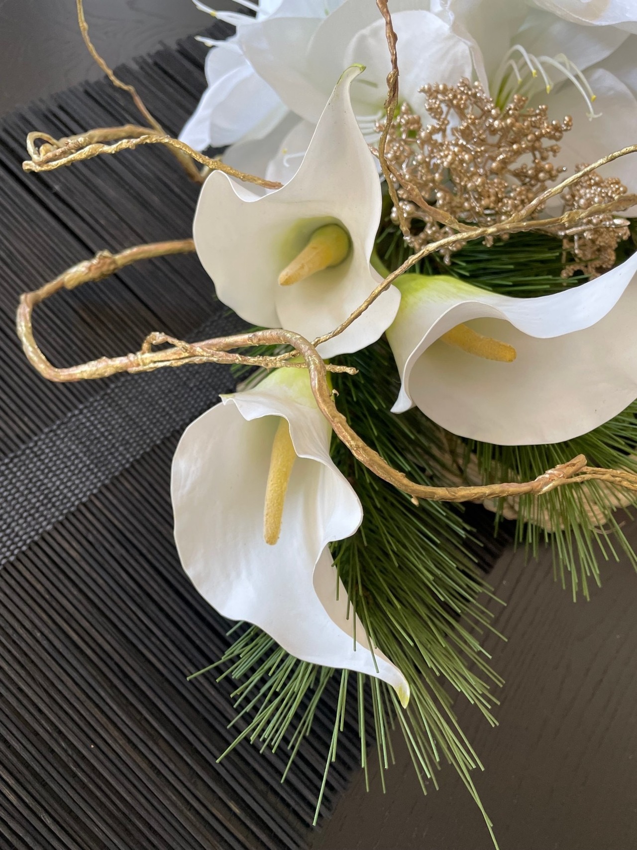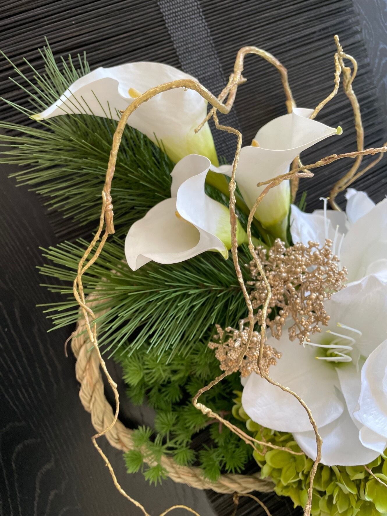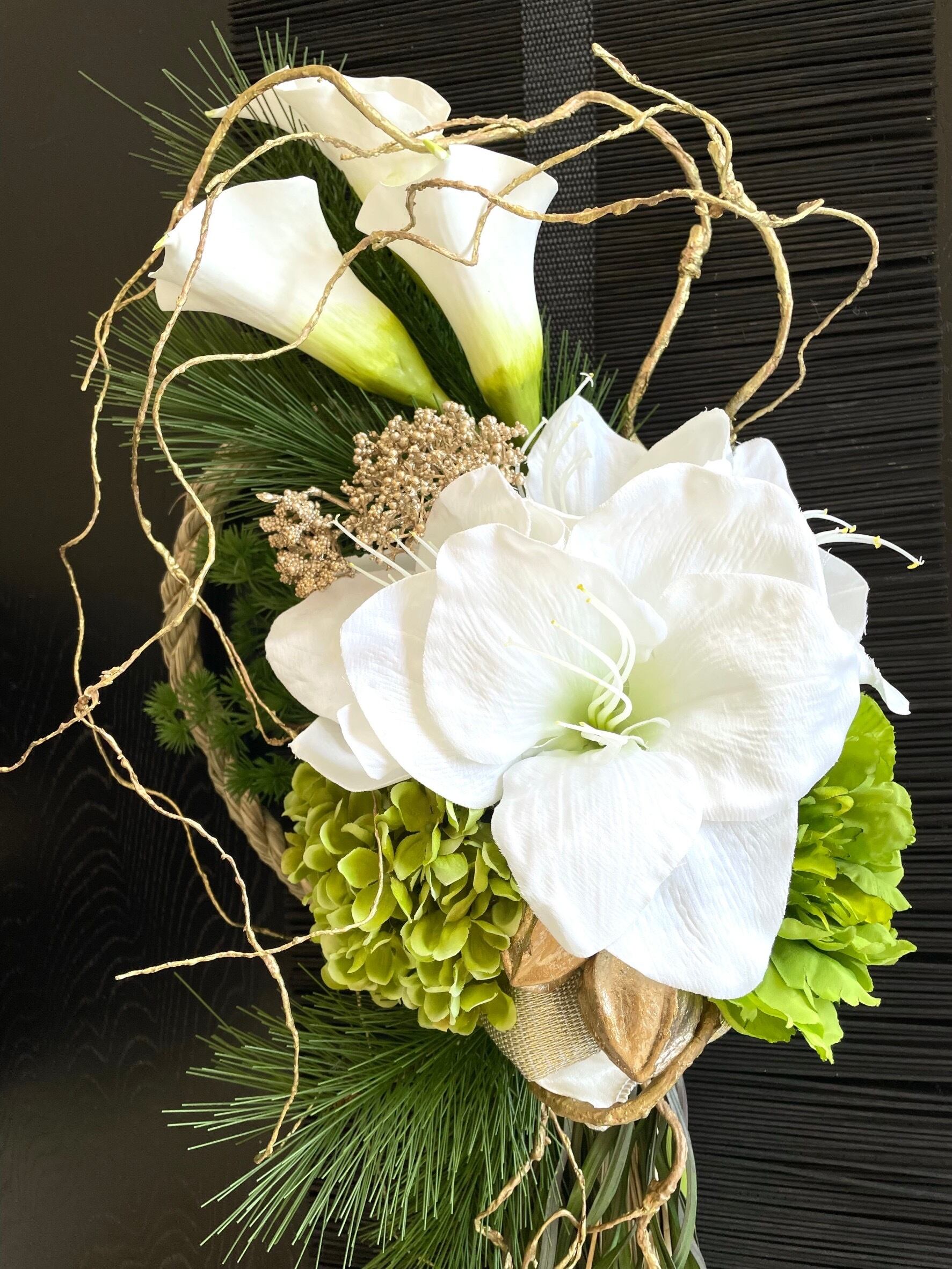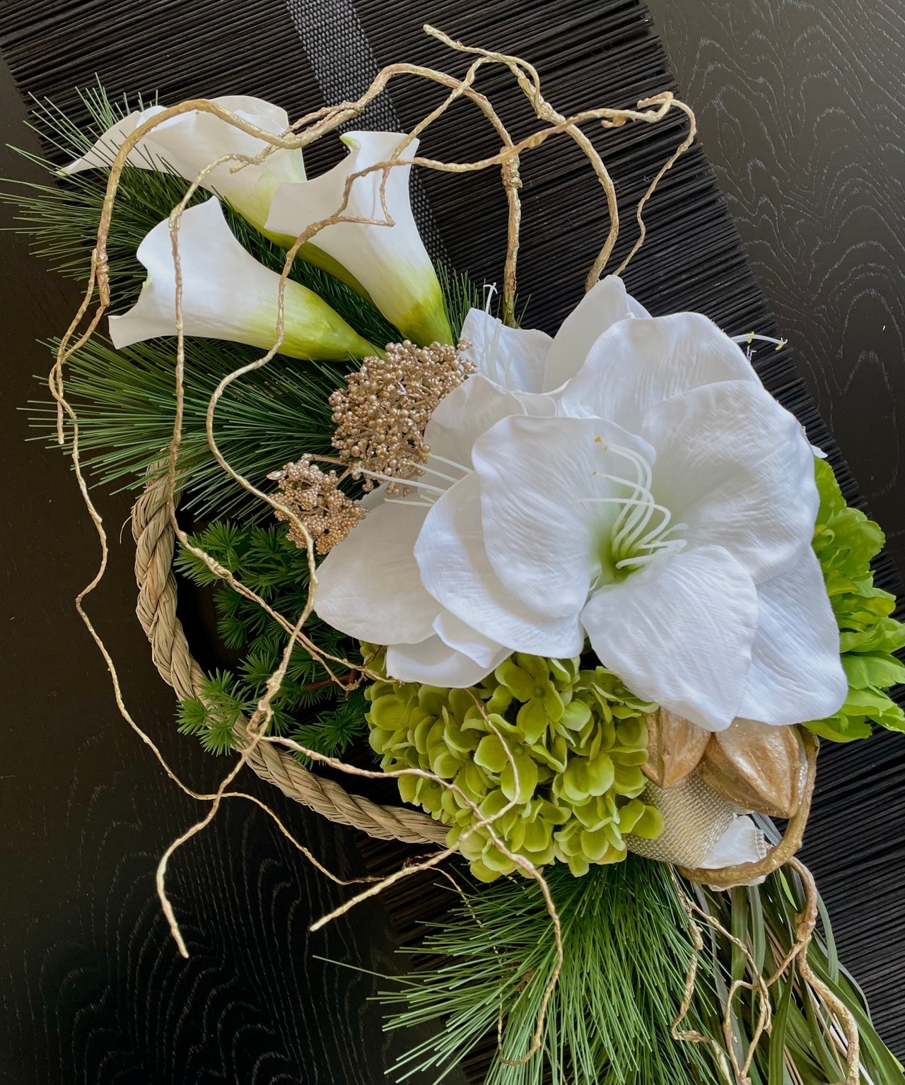洗練されたアーティフィシャルフラワーのお正月飾りです。