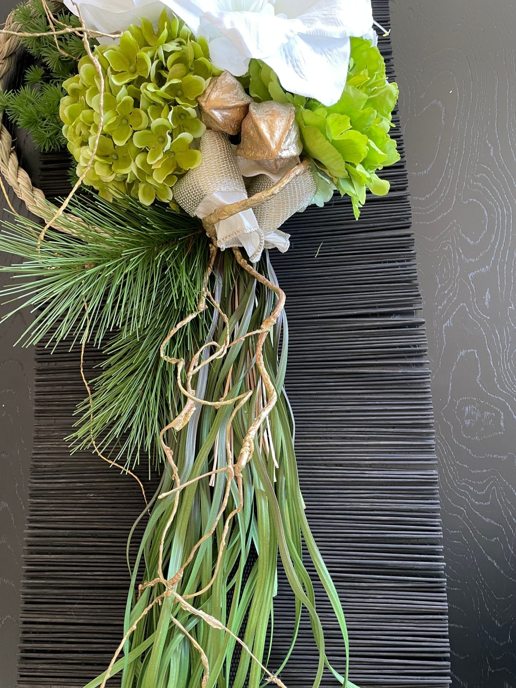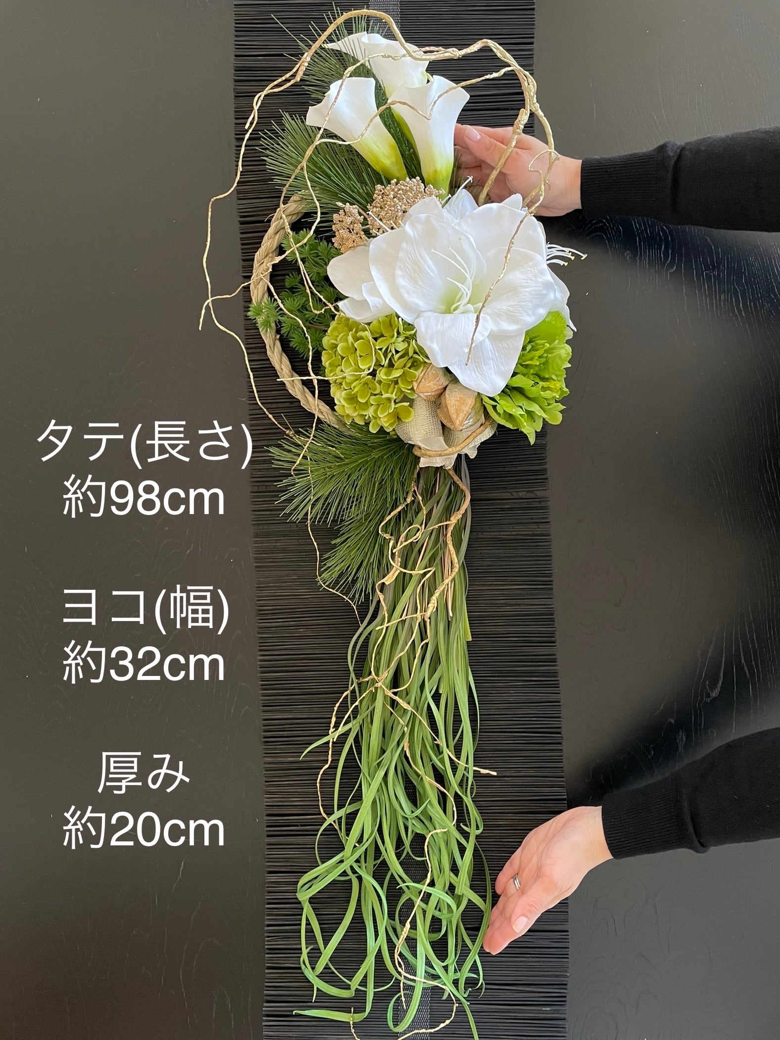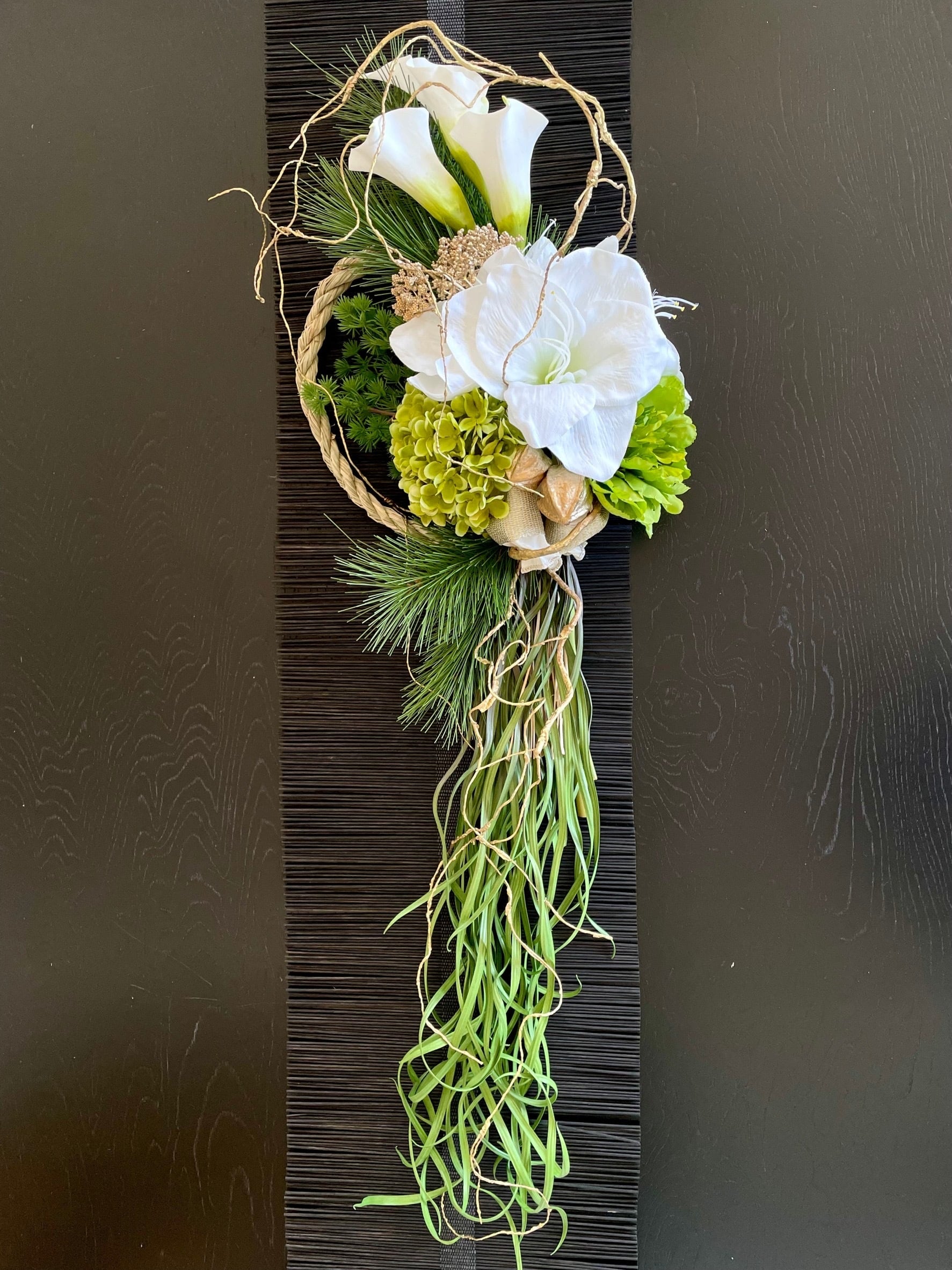 しめ縄としてはもちろん、アーティフィシャルフラワーの壁かけリースの感覚でもお飾り頂けます。