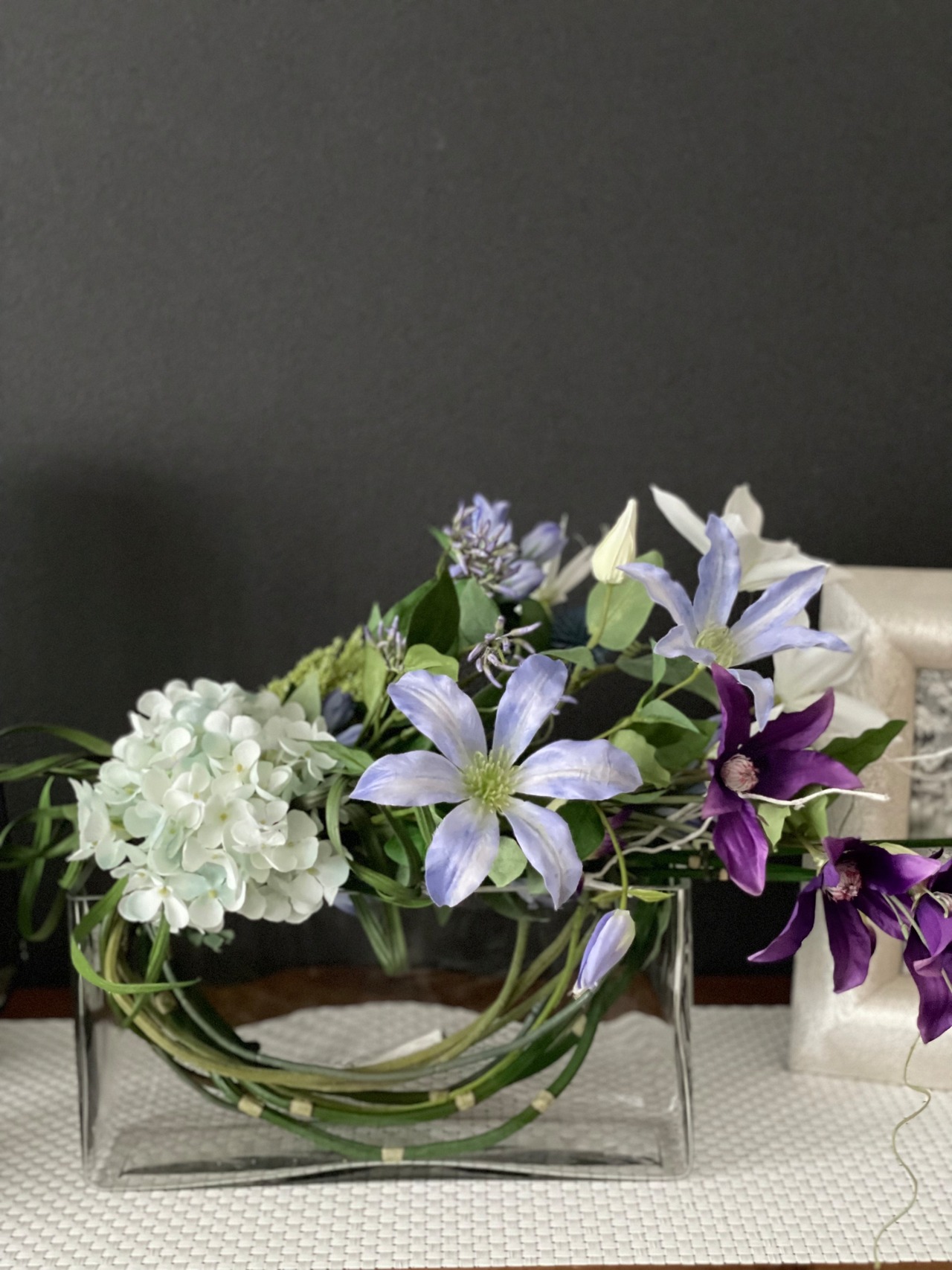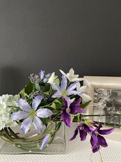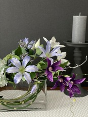 クレマチスの涼やかな2WAYコーディネート(ポーランド製のガラス花器)