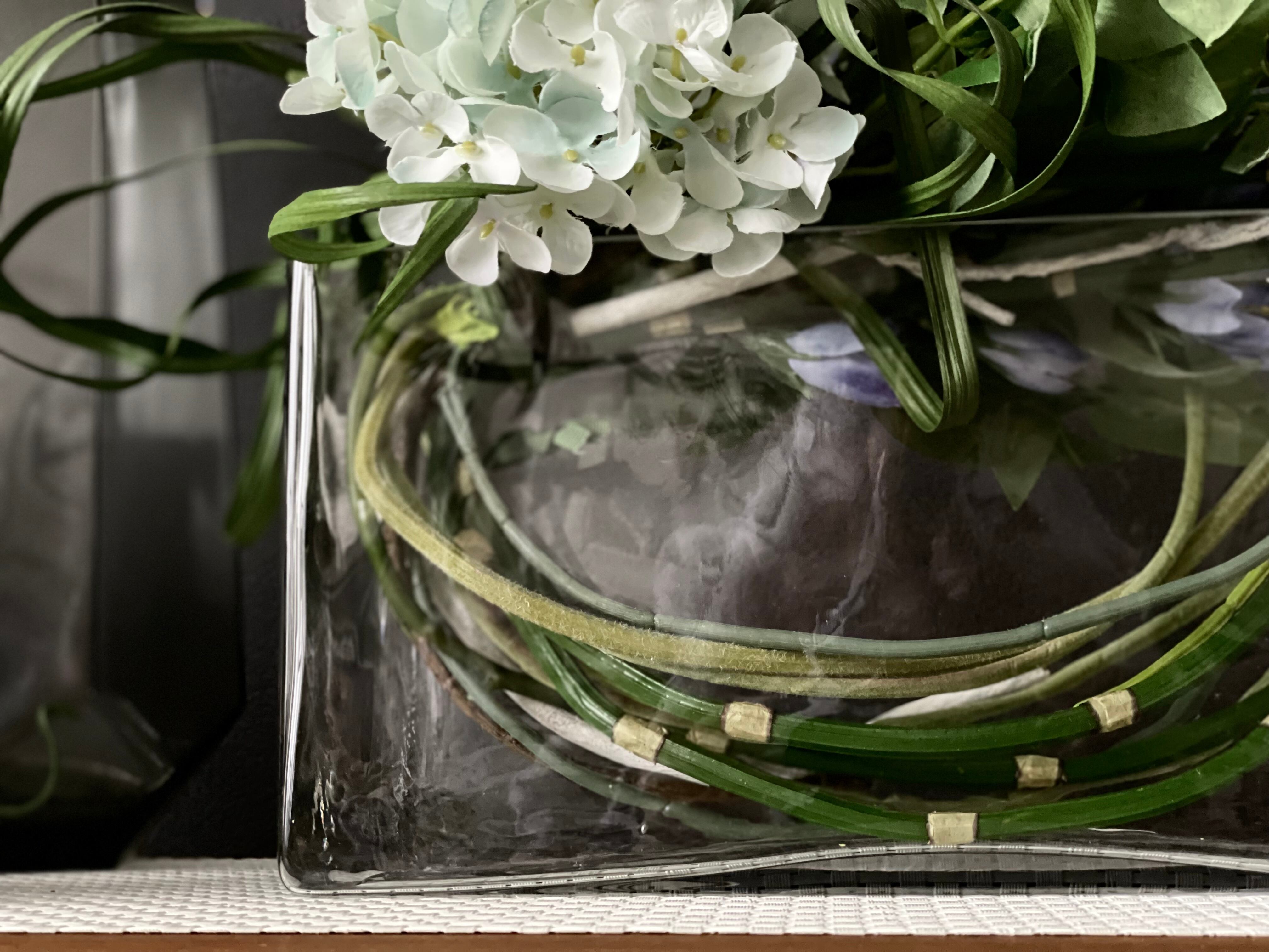 夏のお部屋を爽やかに彩る、上質なアーティフィシャルフラワーアレンジメントです。